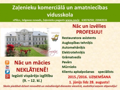Aicinām mācīties Zaļenieku komerciālajā un amatniecības vidusskolā!