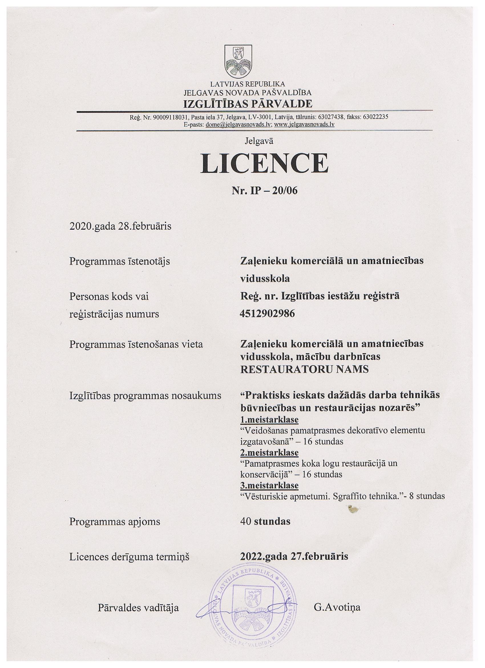 Pielikumi: Restauratoru nama meistarklašu neformālās izglītības programmu licences